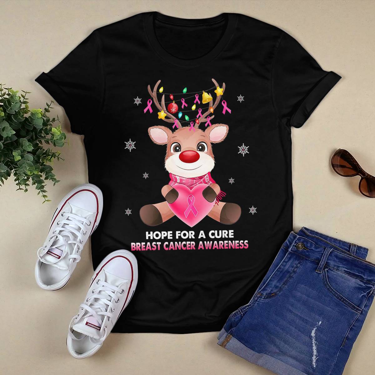Breast Cancer Christmas Reindeer Pink Ribbon Xmas Brc2345