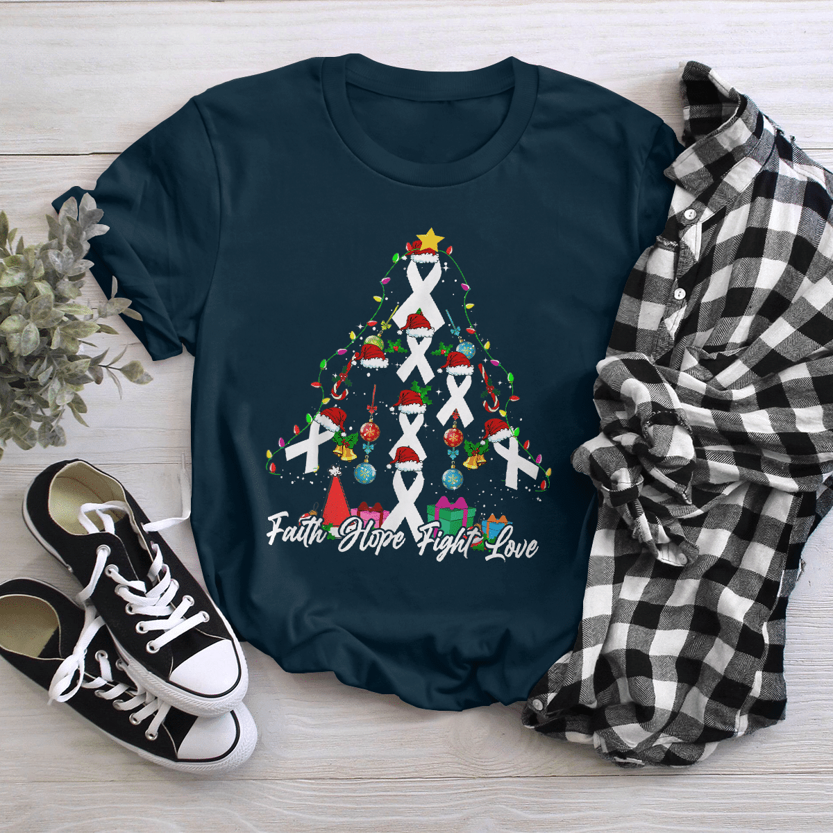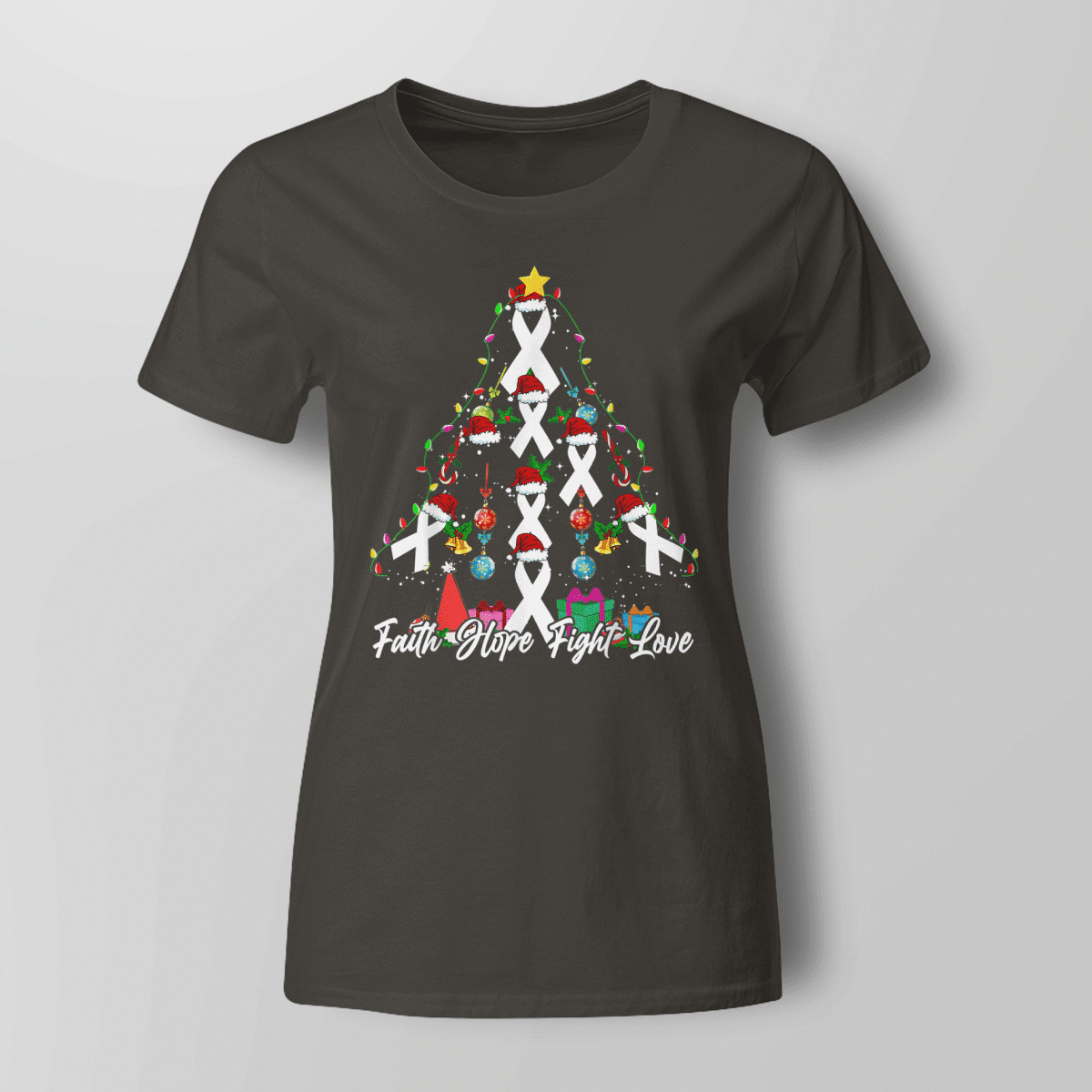Santa White Ribbon Christmas Tree Lung , Breast Cancer Awareness T-Shirt, Special Gift for Breast Cancer Warrior